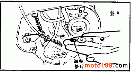 首先調(diào)整油門鋼索的自由間隙,其調(diào)整方法與 DX100 型摩托車相同。然后再做以下檢查調(diào)整。