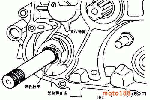 ( 5 )檢查復(fù)位彈簧座和右曲軸箱體限位凸塊是否損壞,如損壞則應(yīng)更換彈簧座或箱體。