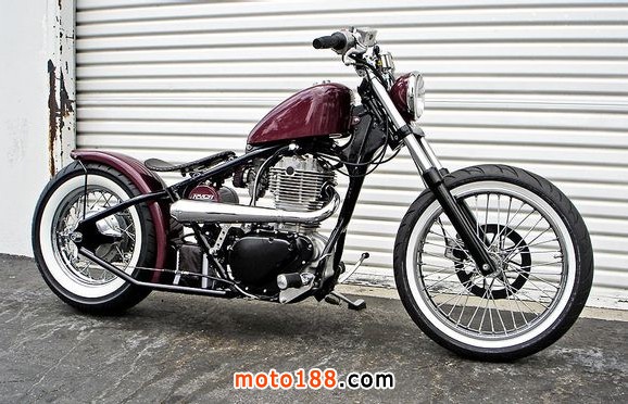 bobber改裝風格是能拆就拆能簡就簡.我的理解就是就是X-MAN所說的那種穿透試的改裝風格吧,把一切不必要的裝飾板,轉向燈,電控開關都給去除,座位改成單座,把原來的油箱改小,有的甚至把前剎車都給去除了,只要不影響行車,可以跑起來的情況下那些可有可無的東西都給去除了。把車變的最簡單的同事也給車減肥不少。這樣車身變輕了,駕駛起來可以更加的操控自如了,車的速度也可以得到提高。