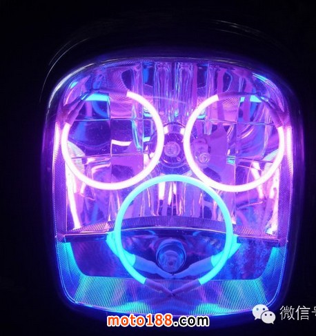 ↑以燈管原理設計,主要都以圓圈型式為主,具有低耗電與壽命長的優點,多半被運用于機車魚眼周圍與風扇內側之處,不過CCFL是以玻璃易碎材質制作,只能改裝于不易造成碎裂之處,范圍較受限制。