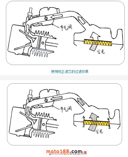 2.劣質空氣濾芯器,其濾紙容易被灰塵在較短的時間內堵塞,濾紙的透氣性很快就變差,且劣質空氣濾芯器普遍濾紙“皺褶”較少,過濾面積小,因此無法讓空氣順暢進入發動機燃燒室,導致發動機進氣不足,發動機動力下降,油耗增大。