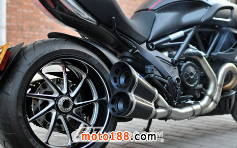 原廠排氣在全段的條件下,所得重量為10.15kg,而Termignoni全段排氣則為6kg,整體輕了4.15kg。對于原本重量僅205kg的Diavel Carbon,又再減輕4.15kg,在不提動力強化多少的前提下,輕量化就已經是對整體動力與操控提升的最大優勢!!