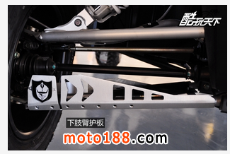 這個(gè)盾牌形狀上面帶一個(gè)護(hù)甲頭盔標(biāo)志的就是Pro Armor支臂護(hù)板,Pro Armor譯為盔甲,顧名思義,也能猜到這是一款起到保護(hù)作用的防具,保護(hù)的就是全地形車(chē)上最脆弱、最易受傷的下肢臂。因?yàn)槿匦诬?chē)多出現(xiàn)在沙漠、碎石路段,對(duì)于下肢臂的傷害是時(shí)常的且難以避免的,由此就體現(xiàn)了一款肢臂護(hù)板的重要作用。而這款PRO ARMOR護(hù)板是專(zhuān)為北極星剃刀1000打造的,帶個(gè)性標(biāo)志的護(hù)板不僅增強(qiáng)了外觀(guān)上的美觀(guān),鋁合金的材質(zhì)也能夠最大程度的保證下肢臂的安全。
