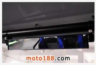 藍(lán)色的防沖撞后視鏡,看質(zhì)感就能感受到它堅(jiān)硬的態(tài)度,別看電光藍(lán)用在這一個(gè)小小的細(xì)節(jié)上,也有如畫(huà)龍點(diǎn)睛一般,使整車(chē)的外觀(guān)看上去更加靚麗。如果覺(jué)得這左右兩只小后視鏡不能滿(mǎn)足大視野的要求,車(chē)內(nèi)的廣角后視鏡便必不可缺了。沙漠行駛不像公路,沿著規(guī)劃好的直線(xiàn)一直向前,沙漠廣袤隨意馳騁,不知道從哪就會(huì)躥出一輛硬漢越野,為了避免沖撞的危險(xiǎn),廣后視鏡提供了大范圍的視野需求。