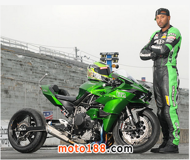 雖然KAWASAKI H2及H2R已接受預訂,但正式交到車主手上仍需要一段時間,然而現在已獲得廠方提供車輛并進行改裝的車主,肯定是非一般的車迷。獲得共11次直道加速賽(DRAG RACING)世界冠軍Rickey Gadson從1996年與KAWASAKI合作之今,他搶先一步取得的車輛是KAWASAKI特制的混合版H2,采用街道版200匹機械增壓引擎,配備了賽道版碳纖飛機翼的車頭,而Rickey Gadson的任務是把車輛改裝成直道加速賽戰車。