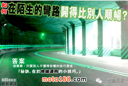 駕駛電單車的樂趣,除了自由奔放之外,還有處理連 綿彎道的樂趣。車廠的製作技術和駕駛人的技術高低,在應付連續彎道時便會無所遁形。車種受先天性所限,應付彎道的潛質沒有太多改造空間。但人類有學習能 力,可以通過知識學習和肌肉記憶來提升彎道技術。要愉快地在山林之間獨走,要無拘無束地在海岸線之間暢游,必需擁有正確的操控技巧和視線運用。以下時間, 我們集中討論視線運用: