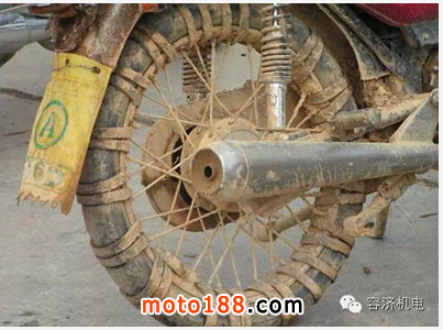 (2)在后輪上纏一條繩子,用大約根手指差不多粗的尼龍繩!防滑效果很好!