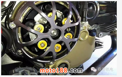 在不需要打洞/液體漏出的前提下,給濕式離合器的蓋子噴漆,或者換成透明的改裝蓋子;另外,濕式離合改干式離合是可能的,Moto Corse就研發(fā)出了1199 Panigale可以使用的干式離合器,不過價(jià)格嘛,哥只能呵呵了,4300美金起的售價(jià)應(yīng)該足夠打消你耍酷的“幼稚”需求。
