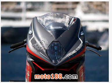 Virginio Ferrari這個名字好熟面口,原來他是當年活躍GP500的車手,他是誰?容后再談,今次由Virginio Ferrari Racing與Pakelo高級意大利機油贊助,將MV AGUSTA F3 675改裝成為一臺專業的特技車,車身拉花配色非常精美,極俱欣賞價值。日前,并將新車給予專業的電單車特技人Thibaut Nogues,現在他以開始試駕新F3 675特技車練習,為它日表演作出準備。