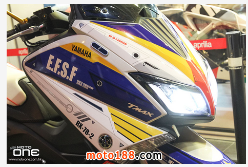 在本年初的一次活動中已經被這臺高達貼紙拉花的新款2015 T-MAX 530吸引,可惜當時忙於拍攝活動,忘記拍攝車身細節。今天,在亞林的陳列室再度看見,當然要把握機會成功捕獲野生「高達」2015 T-MAX 530。