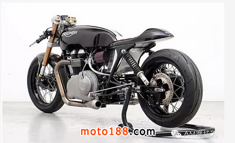 這輛2008款Triumph Thruxton經(jīng)過重度改裝,其引擎幾乎全部重制,不僅缸體被擴(kuò)容至1000cc,此外活塞、連桿、套筒、缸頭等等全部更換或者加強(qiáng)。原本只有39匹馬力的雙缸引擎硬是被壓榨出110匹馬力,動(dòng)力提升達(dá)到了近300%,讓人嘆為觀止。