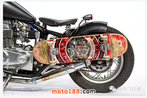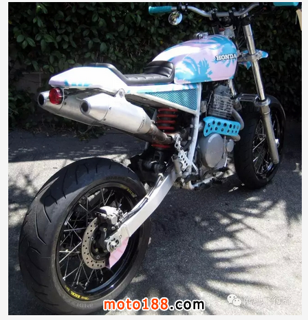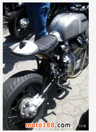 Deardorrff原來的定制計劃是改裝前叉和車座部分,但后來計劃變得越來越瘋狂!為了能夠容納一個取自2008 款CBR600RR的后減震,喬什對油箱和油箱蓋和前叉部分都進(jìn)行了重新設(shè)計,成了現(xiàn)在大家看到的這個咖啡賽車的樣式。這輛摩托的前懸架是從本田CBR600RR改造而來。前輪轂是來自本田CB750,后輪轂則是來自本田金翼GL1000 。