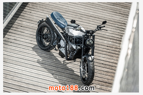 這輛Lara 800是基于MV Agusta Brutale 800打造,原車本來就擁有出色的性能,無論是機械還是電子件幾乎都用上了最好部件,因此基于此打造出的Scrambler性能毋庸置疑。Lara 800絕對是一輛陽剛氣十足的車,激進的車身設計向外界傳達出的訊息不言而喻。而手工打造的一體式鋁合金油箱及車座上包裹著高等級的藍色皮革,細致的做工加之完美的比例,又透出一股法蘭西式低調奢華。