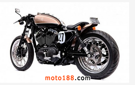 澳大利亞改裝廠(chǎng)Deus Ex Machina 的品作-禿狗(The Bald Terrier)由一輛2007年的直噴型哈雷Sportster1200改裝的摩托車(chē)。Deus的工程師為其換上了重新定制的輪轂,順帶還升級(jí)了剎車(chē)卡鉗和盤(pán)片,還換了獨(dú)一無(wú)二的Vance & Hines排氣系統(tǒng)和經(jīng)過(guò)重度改裝的雅馬哈SR400油箱。