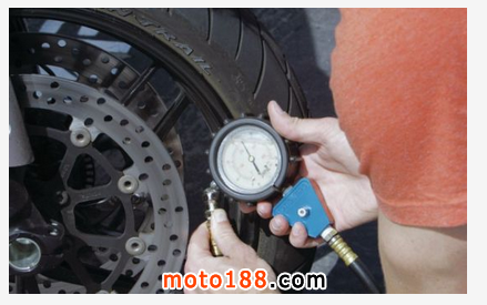 9.輪胎應(yīng)保持正常的胎壓(參考摩托車使用手冊或輪胎側(cè)面標(biāo)識數(shù)值)和使用性能,胎壓不足將導(dǎo)致油耗加大;胎壓過高則會降低輪胎抓地力,且有爆胎的可能性;老化、開裂及過度磨損的輪胎及時更換。