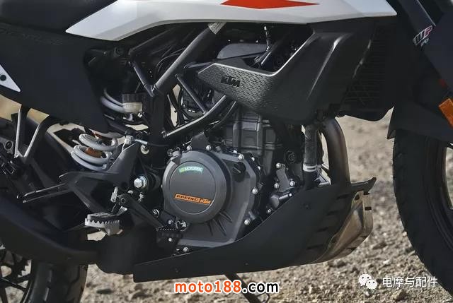 KTM 390 Adventure核心動力來自于一臺373CC單缸水冷四沖程發動機,匹配電噴系統,符合國四排放標準。發動機最大功率為32千瓦,約43.5匹馬力,最大扭矩為37牛米。油箱容積為14.5L。