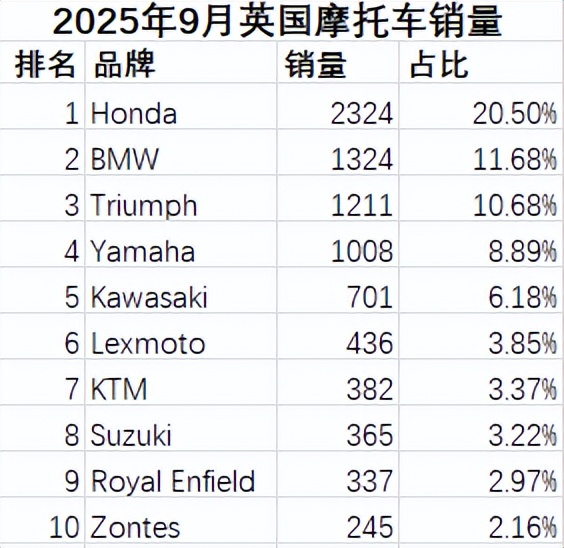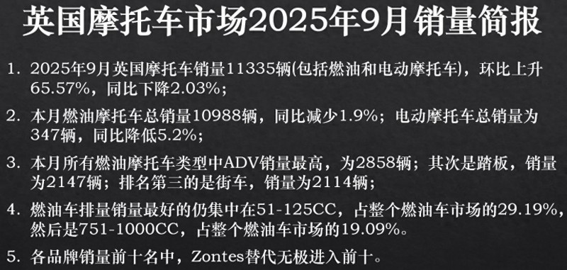 2025年9月英國(guó)摩托車市場(chǎng)銷量簡(jiǎn)報(bào)